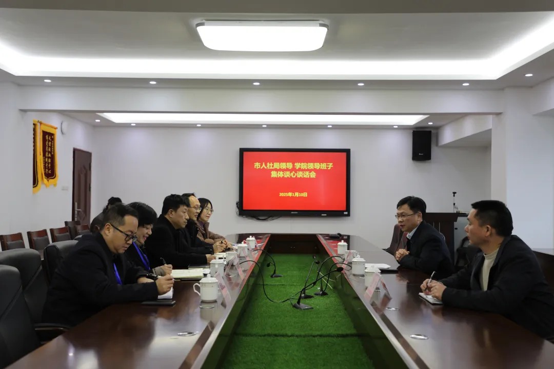 接着,在学院综合楼六楼会议室开展廉政谈话。唐德华局长在与学院领导班子廉政谈话时表示,学院在2024年技能中国行、技能大赛和海创活动中做出了贡献,对学院取得的成绩表示肯定和祝贺。他指出,学院在历届领导班子的带领下,已打造成了国家级重点技工学校和国家级高技能人才培训基地,为全市经济社会发展做出了积极贡献。他强调,学院要严格落实党组织领导的校长负责制和民主集中制,党总支部要履行好把方向、管大局、做决策、抓班子、带队伍、保落实等职责;书记、院长及班子成员之间要加强沟通协调,注重形成合力;要加强学院党风廉政建设,班子成员要带头学习贯彻二十届中央纪委四次全会精神,坚持用改革精神和严的标准管党治党。