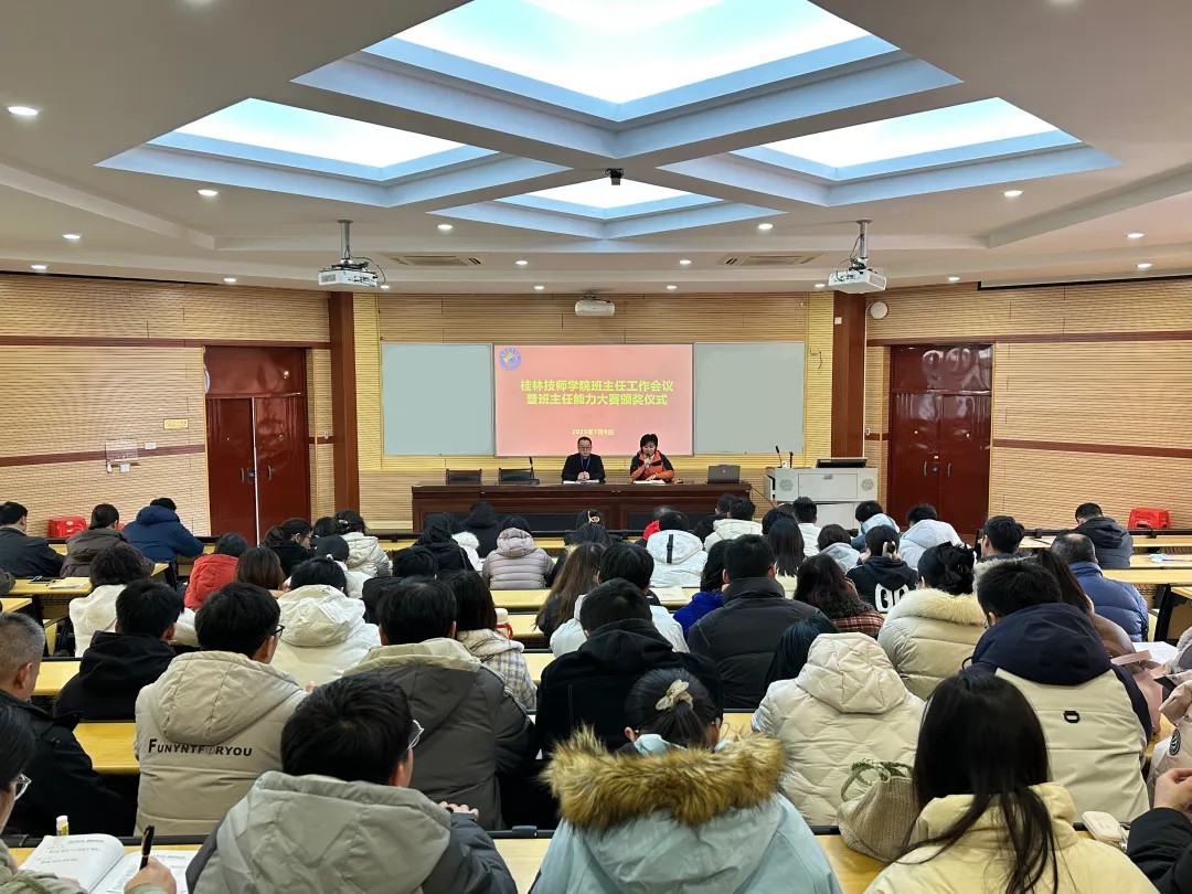 1月8日下午,学院班主任工作会议暨班主任能力大赛颁奖仪式在录播室举行。会议全面总结了2024年学生管理工作的亮点和不足,随后班主任能力比赛优秀选手郭玲、许云龙、李翠华三位班主任依次进行展示。学院副院长赵德元在讲话中强调,班主任是学校教育工作的中坚力量,是学生成长道路上的重要引路人,希望班主任以赛促学、以赛促教,进一步提升班主任的专业技能,强化班级管理的能力,努力从一名普通班主任成长为一名专业班主任。