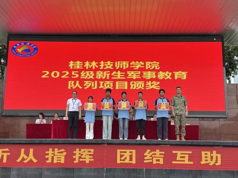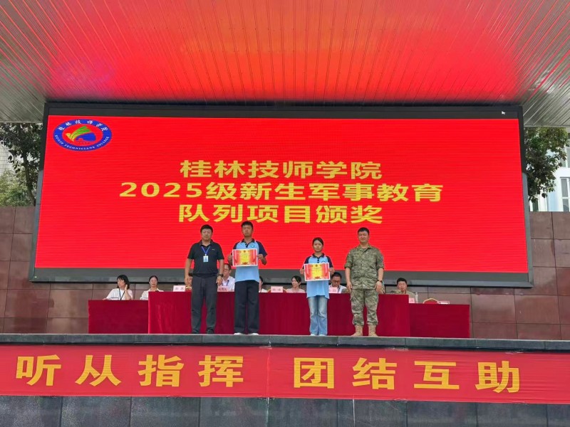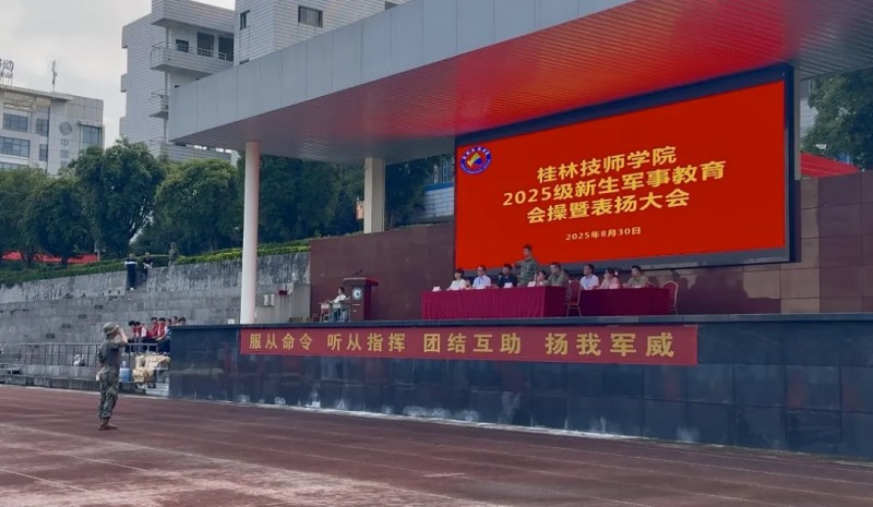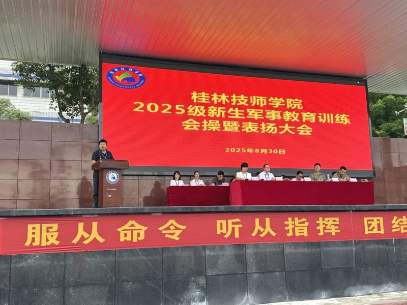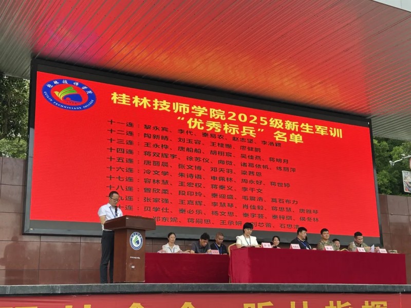 会操结束后,学院党委委员、副院长赵德元宣读《桂林技师学院关于表扬2025级新生军事教育训练先进集体与个人的决定》。此次军训中,全体新生以饱满热情、顽强意志完成训练,涌现出大批作风优良、表现突出的集体与个人,其中113名优秀标兵脱颖而出,他们的出色表现不仅为自己赢得了荣誉,也为同学们树立了榜样。在队列评比项目中,七连、十四连以严明的纪律和整齐划一的动作,荣获队列会操一等奖。
