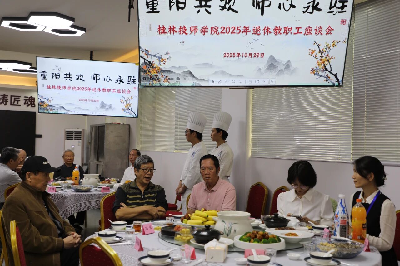 随后,学院领导和中层正职在烹饪实训室与30名退休教职工开展了重阳节座谈会暨敬老午宴。院长李金河在讲话中再次向全体教职工致以节日祝福,并重点介绍了学院未来发展规划,描绘了学院高质量发展的美好蓝图,进一步增强了教职工的归属感与凝聚力。