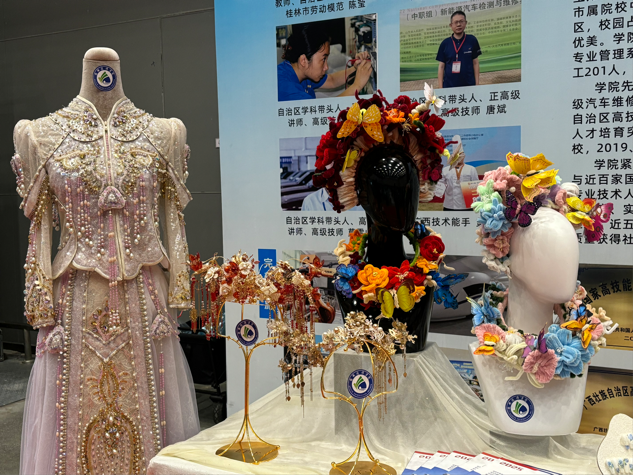 赛事期间,自治区职业技能鉴定中心专家到学院展位参观,详细听取了我系关于专业建设、人才培养及备赛情况的汇报,逐一观摩了中式秀禾服饰、师生共创美甲作品、簪花手工技艺以及茶艺展示等展示项目,并与我系师生进行了亲切交流。领导对我系将传统文化与现代技艺深度融合的创新实践给予了充分肯定,对师生们展现出的精湛技能和良好精神风貌表示赞赏,并鼓励我系继续坚持特色发展,为行业培养输送更多高素质技术技能人才。