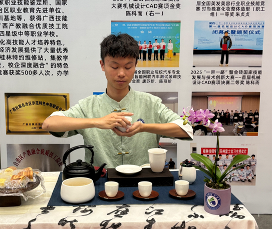 职业技能之实:旅游商务系学子的现场茶艺展示格外引人注目,这一展演直观印证了学院立足市场导向、强化学生实践操作能力所取得的扎实育人成效。