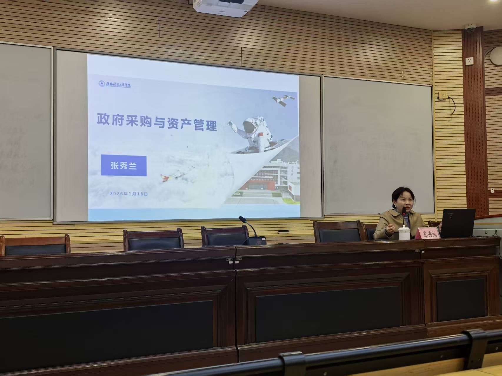 为进一步规范政府采购流程,强化国有资产管理效能,切实提升相关岗位人员的政策理解力与实务操作能力,1月16日,学院特邀桂林航天工业学院张秀兰教授作专题辅导讲座。学院各部门业务骨干齐聚一堂,参加此次“政府采购与国有资产管理”专题培训。