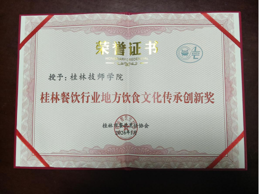学院荣获桂林市餐饮烹饪协会“桂林餐饮行业地方饮食文化传承创新奖”