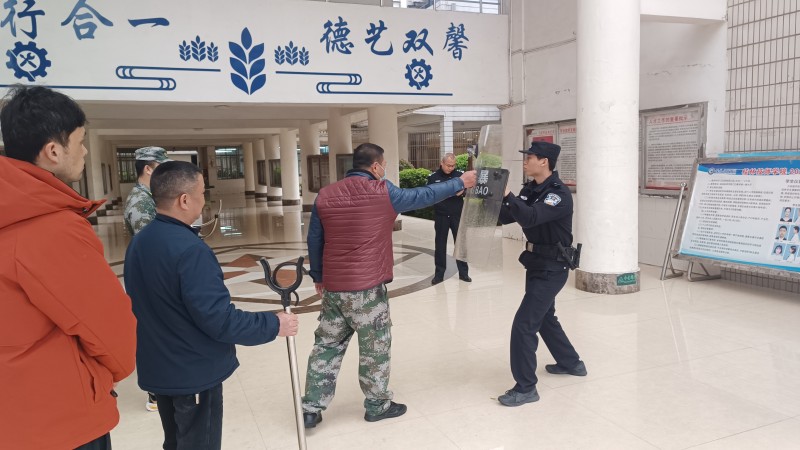 演练中,保卫科工作人员与驻校教官按照预案分工协作,规范使用防暴盾牌、约束叉等防暴器械,高效完成“现场封控、嫌疑人控制、带离处置”等全流程操作,展现了良好的专业素养与实战水平。